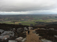 Overcast and chilly wind but after work and a gridlocked supermarket (on a Saturday afternoon - aaargh) it was hugely reviving to get above the tree line and up on to Oxen Craig, dogs and I gulping down lungfuls of the clean air.