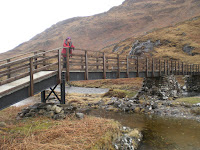 Without detailing every stumble and fall of the next day, suffice to say that what should have been a "comfortable days walk" turned into a ridiculous battle with the elements, negotiating what should have been nothing more than a wet path which the rain had transformed into a series of raging torrents surging down the sides of the mountain, crossing the actual river when we finally got down to it and then "yomping" through the glen with the bog dragging at our legs while the wind viciously attacked us from behind.